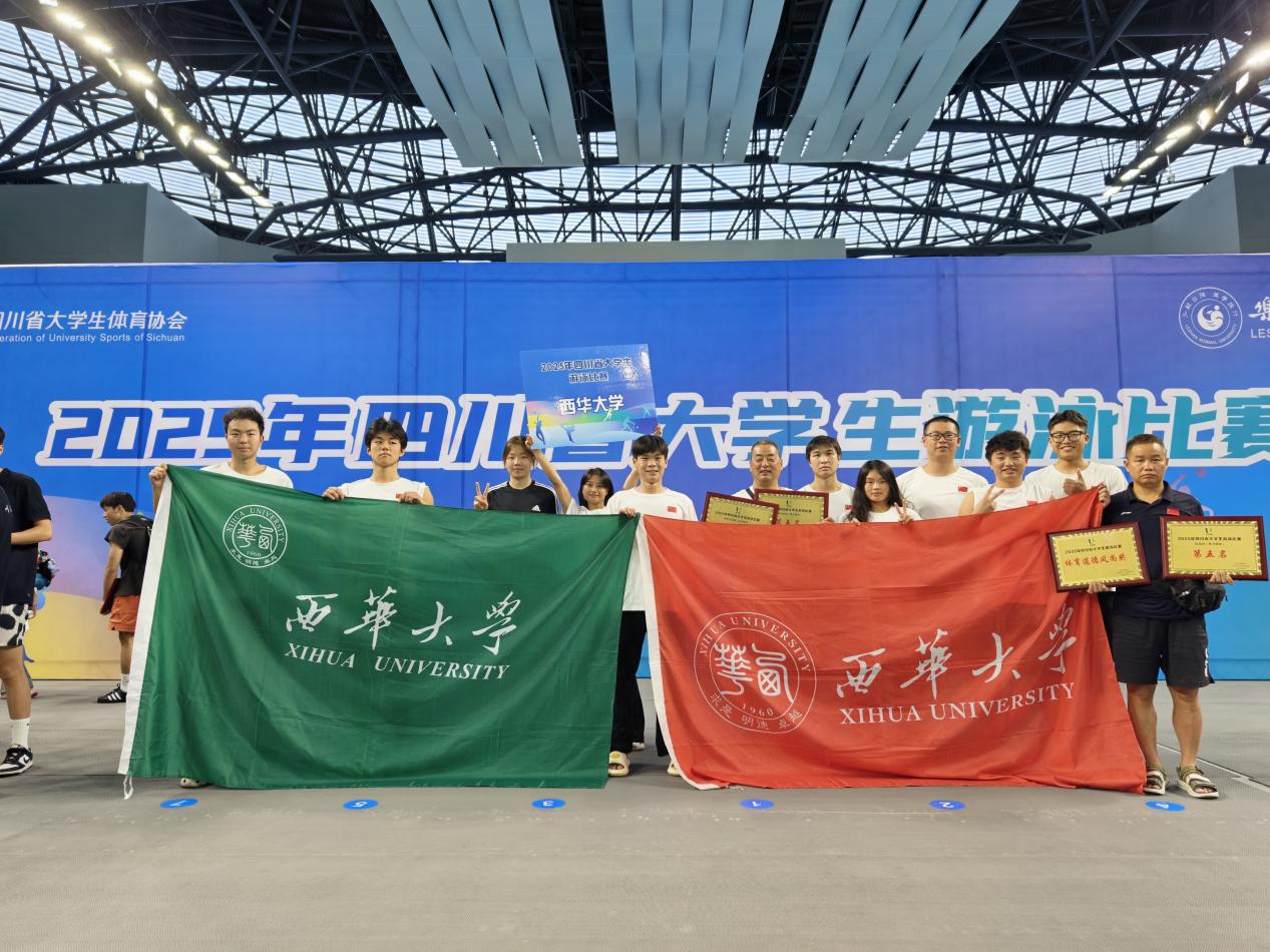6月11日至14日,2025年四川省大学生游泳比赛在乐山举行,汇聚来自全省32所高校的数百名健儿同场竞技。学校游泳队在体育学院王立勇、杨树两位老师的科学指导下,斩获4枚金牌、3枚银牌、2枚铜牌,并荣获“体育道德风尚奖”集体荣誉称号。