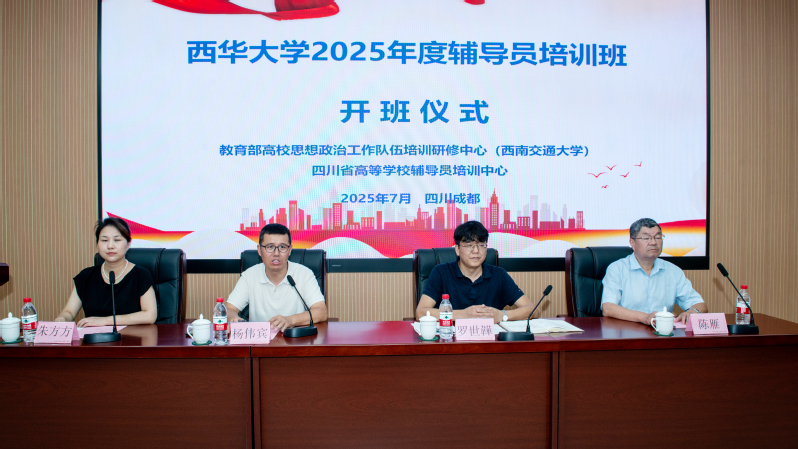 7月9日至13日,西华大学2025年度辅导员思想政治能力提升专题培训班(第三期)在教育部高校思想政治工作队伍培训研修中心(西南交通大学)举办。党委学生工作部部长罗世韡、副部长陈雁,教育部高校思想政治工作队伍培训研修中心(西南交通大学)副主任杨伟宾参加活动开班仪式。各学院党委副书记及专职辅导员代表共52人参加培训。