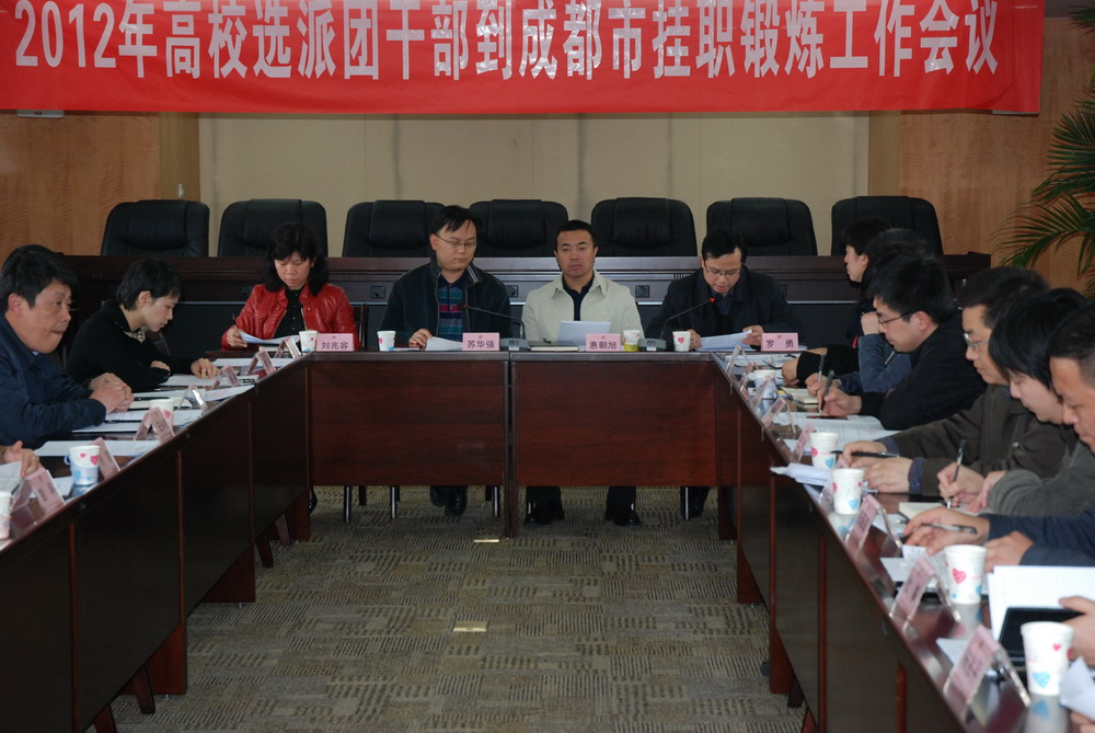 3月26日,成都市委组织部、团市委联合召开2012年(第二批)高校选派团干部到成都市挂职工作会议。我校凤凰学院苏文明老师作为成都市2011年(第一批)挂职优秀干部代表,在大会上作了工作经验交流发言。 苏老师在挂职期间,积极整合社会资源及对接省上有关部门,莅邛开设“青春创业大讲堂“,为YBC创业项目楚涵养殖场引入了50万发展资金,为夹关镇提出的“慢城”青年创业项目已向联合国申报。 据悉,为切实服务成都市委“五大兴市战略”,成都团市委积极争取团中央、团省委支持,2012年共接收18名高校团干部到我市区(市)县团委挂职担任团委副书记,其中16名团干部来自省内高校,2名团干部来自湖北高校。本次选派的挂职团干部有着很好的学历、专业、年龄结构,全部具有本科以上学历,研究生及以上学历10 人,年龄最大的35 岁,最小的23岁,平均年龄29岁。其中,女团干12人,占67%;少数民族团干部1人,占5.56%;全部为中共党员。