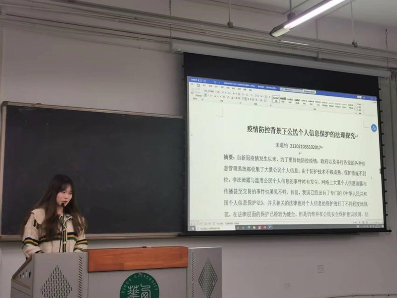 11月7日,法学与社会学学院研究生“个人信息保护法一周年观察”学术沙龙在6C-124教室举办。此次研究生学术沙龙由法学与社会学学院硕士生导师罗娟博士主持,由2021级法律(法学)研究生王利萍同学、2021级法律(法学)研究生宋道怡同学及2021级法律(非法学)研究生丁禹心同学分别就论文作报告,由法学与社会学学院副院长王黎黎教授作点评。