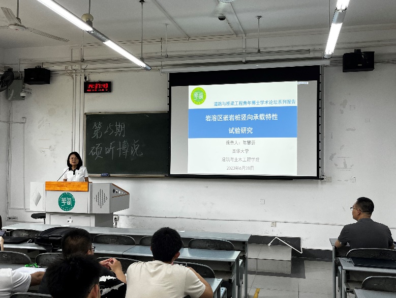 6月28日下午,由建筑与土木工程学院主办的道路与桥梁工程青年博士学术报告在6C119顺利举行,报告由道路与桥梁工程系主任李化云主持。本次报告邀请到了学院道路与桥梁工程系陈慧芸博士、邹宇博士、杨凯博士、潘皇宋博士和侯瑞彬博士,分别就各自的研究领域,给参会学生作了精彩的报告。
