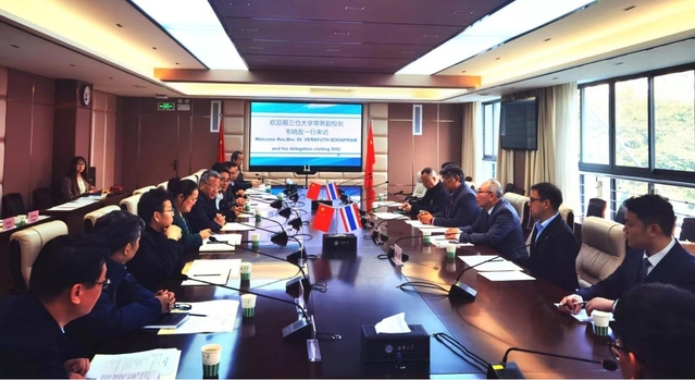 刘树根校长对韦纳友副校长一行到访西华大学表示热烈欢迎。刘树根校长表示,希望西华大学与易三仓大学的合作交流能带动成都地区与泰国的文化交流,促进两地人民的相互了解。费凌副校长表示,西华大学曼谷易三仓校区的建立获得了海内外的关注,以及社会各界的支持。西华大学曼谷易三仓校区未来的发展建设,将进一步深化两校的交流,带动更多教育合作项目、科研合作项目落地。