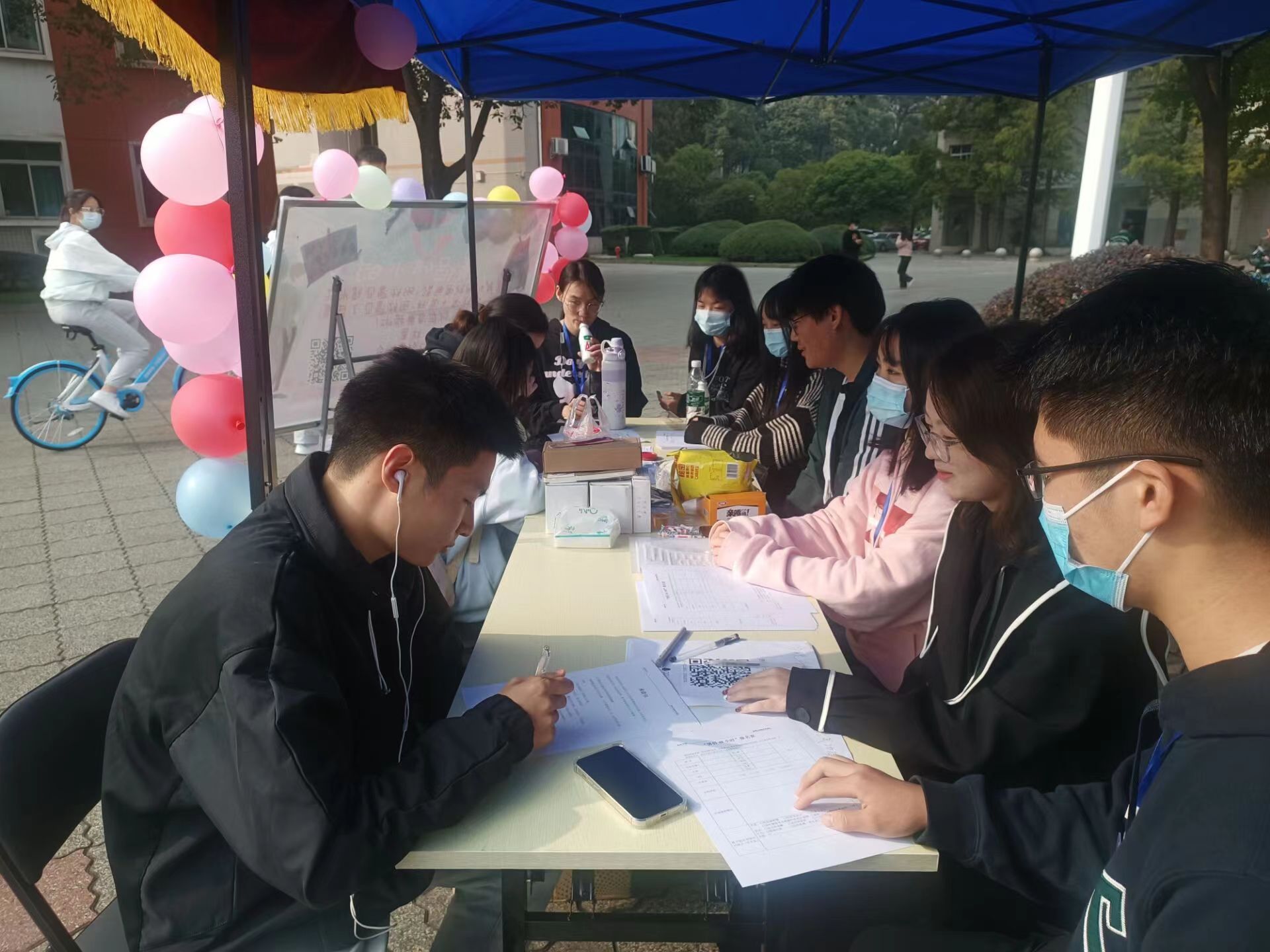 10日8:30至17:30活动在明德广场摆点展开报名,许多同学都对这不一样的活动驻足观望,工作人员也会鼓励他们不要害羞,大胆报名。报名过程中,由同学们填写简单的问卷和一份承诺书,并加入对应的群聊。同学们还可以选择线上或者线下写一封信给后续随机匹配到的另一半,由朋辈的工作人员帮其送达。当晚19:00举行宣讲会,具体讲述了关于“情侣48小时”的内容,让同学们更清楚的了解活动形式。