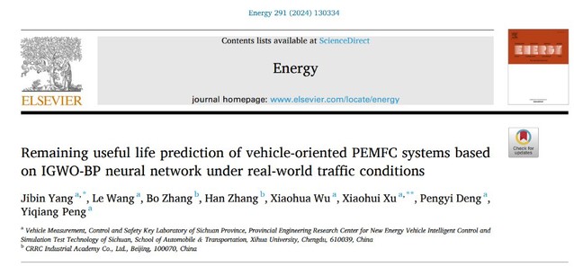 Remaining useful life prediction of vehicle-oriented PEMFC systems based on IGWO-BP neural network under real-world traffic conditions”(Energy)论文第一作者为团队成员杨继斌副教授,第二作者为2021级硕士研究生王乐。该论文提出一种改进的灰狼优化算法和BP神经网络相结合的方法,以相对功率损失率为健康指标,在实际交通条件下预测车载质子交换膜燃料电池系统的剩余使用寿命。
