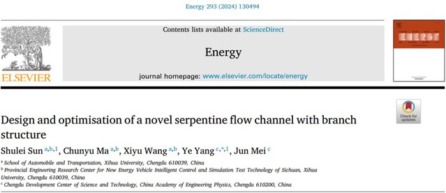 Design and optimisation of a novel serpentine flow channel with branch structure”(Energy)论文第一作者为团队成员孙树磊教授,第二作者为2021级硕士研究生马春雨。该论文提出了一种新型的具有分支结构的蛇形流道,适用于锂电池高效热管理。