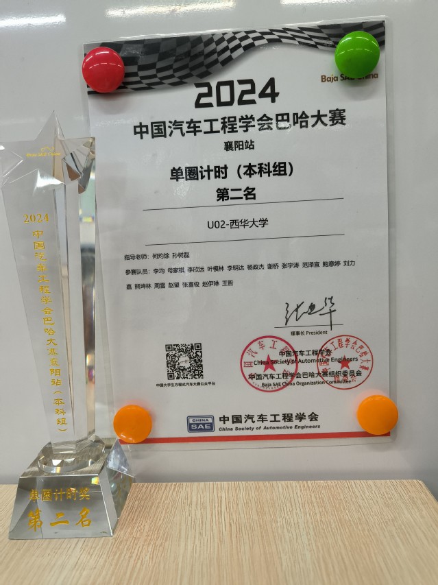 5月7日-11日,2024中国大学生方程式系列赛事巴哈大赛(襄阳站)在襄阳举行。来自吉林大学、武汉理工大学、哈尔滨工业大学等高校的58支车队参加了此次比赛。我校虎鲨车队U2参加了本科组比赛,总成绩第2名,操控性第1名,牵引第1名,单圈计时第2名,4小时耐久赛第4名,获得了巴哈大赛年度亚军。虎鲨车队U2是本科组唯一一个通过专项赛的车队,获得了总成绩一等奖。何灼馀、孙树磊老师获得杰出指导老师奖,全体参赛队员获得中国汽车工程学会颁发的见习工程师证。本次比赛充分体现出西华学子的吃苦耐劳、勇于进取的精神及赛车水平,为学校赢得了荣誉。
