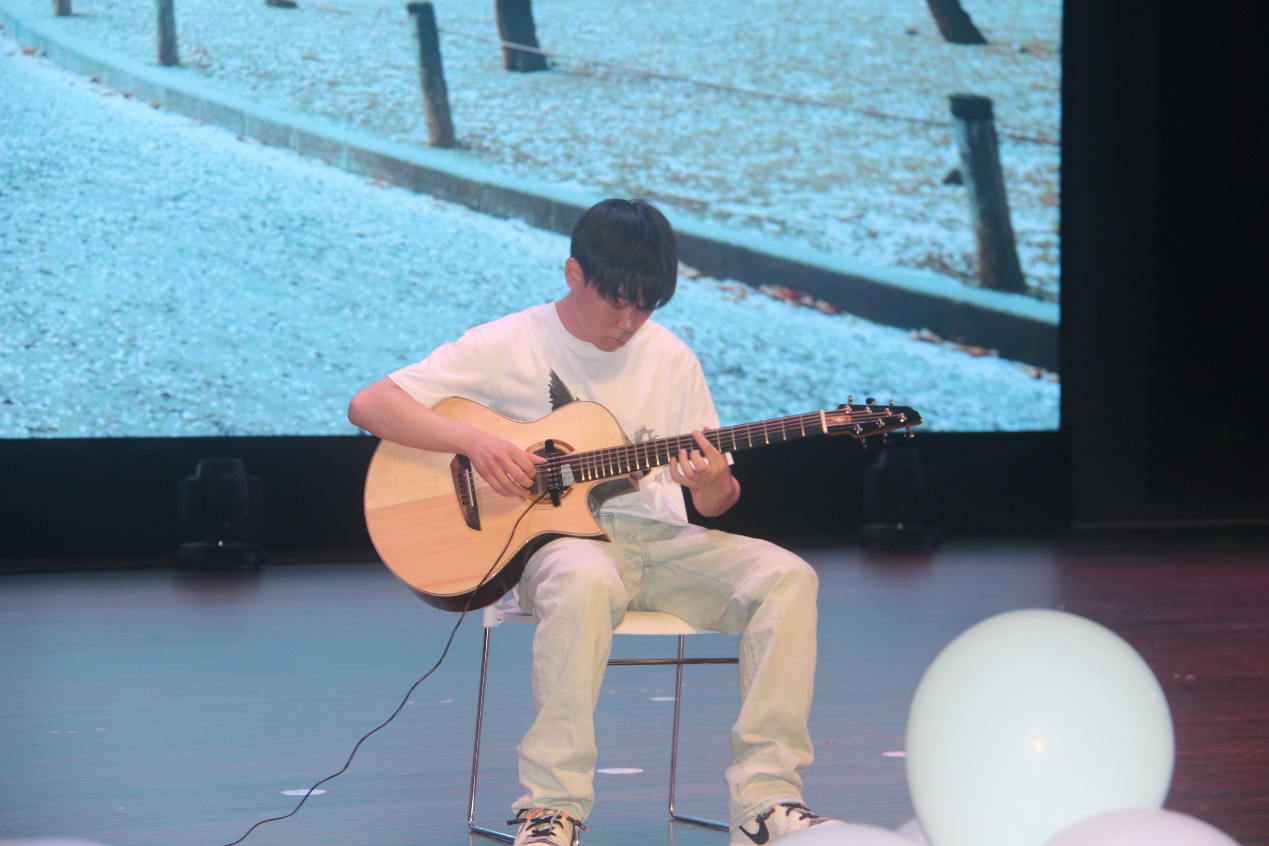 随后是吉他演奏《樱花开花时》,毕业对于每一个人来说都是新的开始,动人的旋律向我们展示出无论将来发生什么,我们都应该像樱花一样,去散发自己独有的美丽。