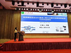 研究生邓盟在会场宣读了论文《碳黑颗粒层在DPF通道上氧化过程中的压降和厚度变化的实验研究》。