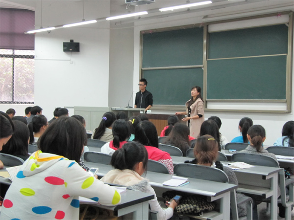 交流会上,两位嘉宾与人文学院大一新生就“大学生涯与职业规划”这一主题进行了观点的交流和互动。其中,刘佳艺与大家分享了他留学芬兰时如何适应异域他乡的经验以及担任友好城市联络人等实习经历的心得,意在鼓励大家主动积极的适应新环境,同时正确处理学习和工作之间的关系。在谈到职业规划时,乔正楠先生认为同学们不仅要学习好专业知识,更要主动学习,拓宽视野,不断锻炼自己做人做事的能力。在交流的过程中,同学们也纷纷提出了自己的想法,现场气氛非常活跃。