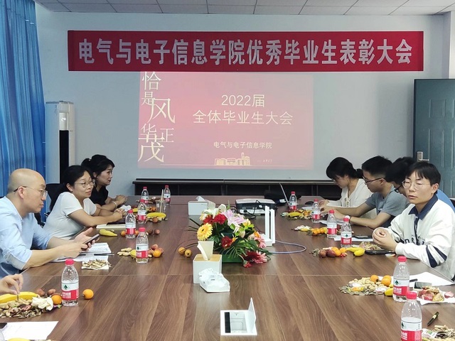 6月1日下午,电气与电子信息学院在6A301会议室召开2022届毕业生座谈会。学院党委书记周良辉、党委副书记郭忠林、辅导员刘钊、赵薇、童锦渝出席本次会议, 2022届部分研究生和本科优秀毕业生及学院学生会、实验室、党支部代表参会。