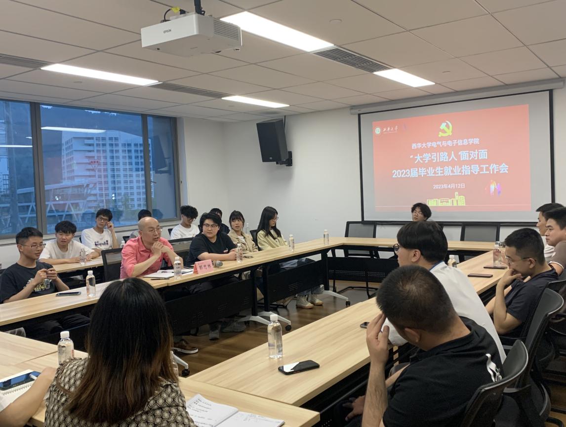 4月12日,电气学院党委副书记郭忠林在西华大学宜宾校区开展2023届毕业生就业工作推进会,2023届辅导员邓艳梅和毕业生共计50余人在行政楼411参加了此次会议。