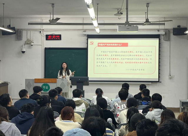 张力丹老师从三个问题引发学生思考,与学员们亲切互动。她将本次党课分为两个专题进行讲授,分别是“中国共产党的性质”和“中国共产党的根本宗旨”。