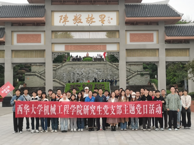 点击:364 根据西华大学“十四五”教育事业发展规划总体要求,为了提升研究生人才培养质量,加强党建工作对研究生思想政治教育和学生党员的引领作用,促进党建与研究生人才培养工作的融合,提高学生党建工作水平,进一步推进学生党员将习近平新时代中国特色社会主义思想转化为坚定理想、锤炼党性和指导实践、推动工作的强大力量。10月21日,机械工程学院研究生党支部赴陈毅故里组织开展了“传承红色基因,弘扬革命精神”主题党日活动。机械工程学院党委副书记、纪委书记李强,学生党支部书记谭秋亚和刘影,研究生党支部学生党员同志共同参加本次活动。