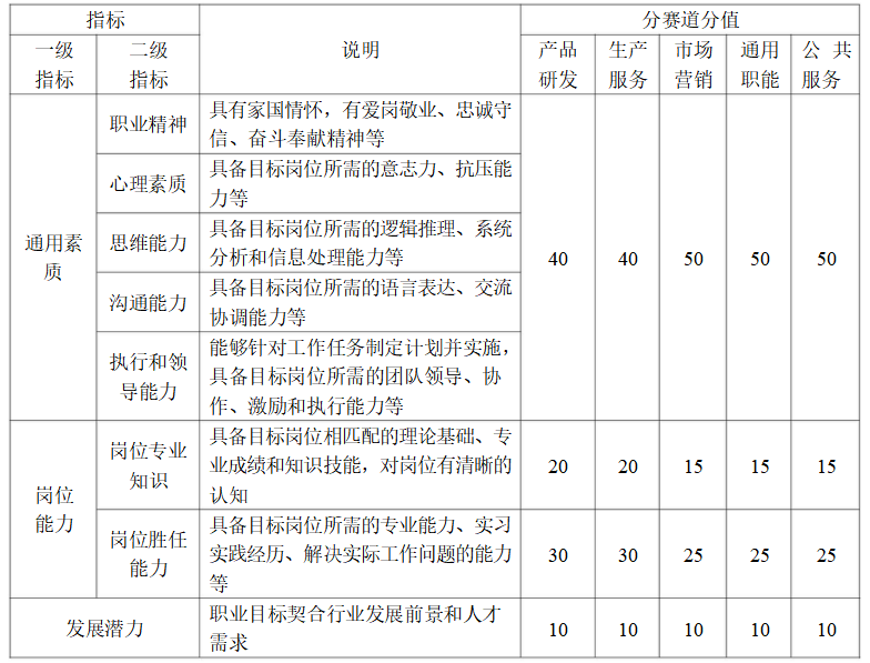 2. 就业赛道。面向高年级学生,侧重考察求职实战能力,个人发展路径与经济社会发展需要的适应度,就业能力与职业目标和岗位要求的契合度,旨在帮助大学生提升就业竞争力和实战能力。