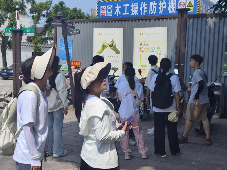 实践队成员在北山小学堂外分享自己的感悟