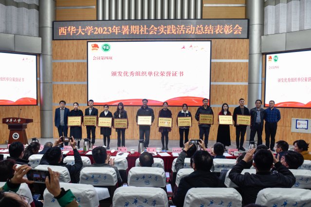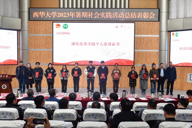 副校长费凌宣读了《西华大学关于表彰2023年暑期社会实践活动先进集体和个人的决定》,与会领导向优秀实践个人、优秀实践项目、优秀组织单位获奖代表颁奖。