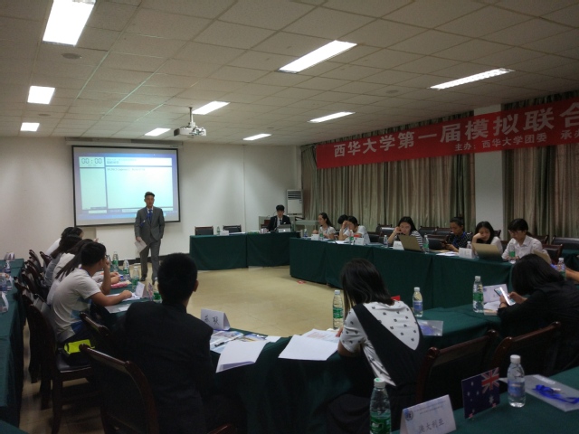 2017年5月20日上午9点20分,西华大学第一届模拟联合国大会在体育馆北会议室拉开帷幕。本次大会由西华大学校团委主办,工商管理学院学生会心理部承办,西华大学模拟联合国协会协办。协会相关负责人、“各国代表”参与了此次会议。