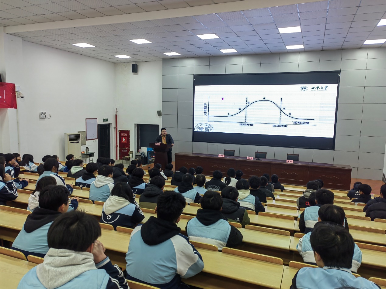 随后,青年博士雷槟恺以“运动过程中人体机能调节的生理学基础与应用”为题,为即将参加2025年体考的学生们带来了一场生动的运动健康知识宣讲。他结合自身研究领域,从运动生理学、运动损伤预防、科学训练方法等方面进行了深入浅出的讲解,为学生们提供了宝贵的备考建议。宣讲结束后,学生们纷纷表示受益匪浅。