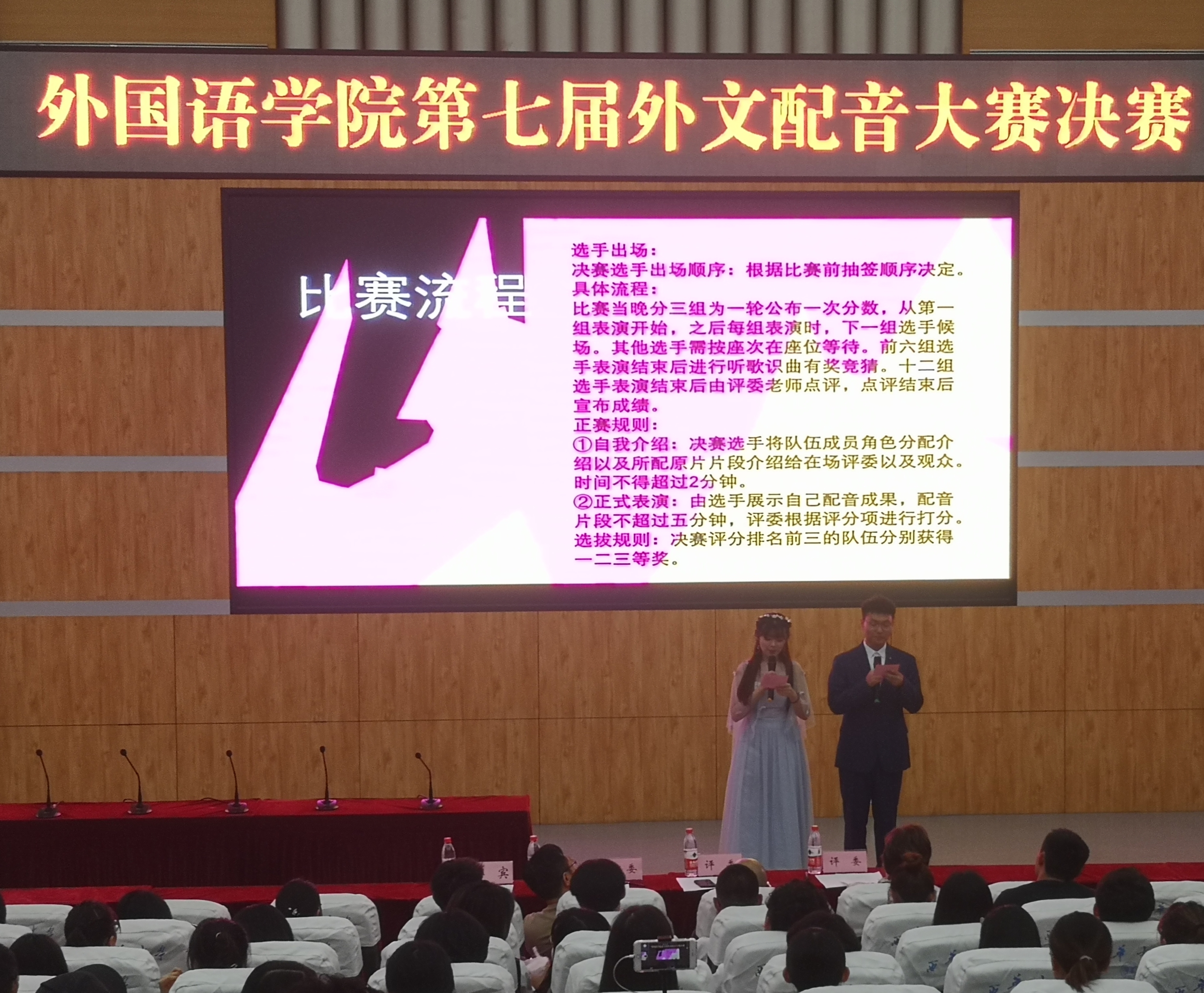 5月11日晚21:00,外国语学院主题为“My choice, My voice ”的第七届英、日配音大赛决赛在四教报告厅圆满落幕。本次英、日配音大赛共有33支队伍参赛,经过初赛的激烈角逐,12支队伍进入决赛。