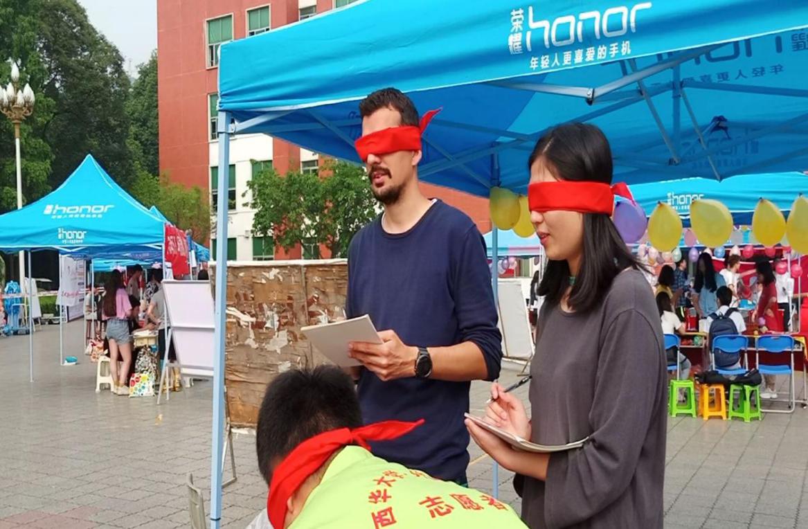 除了本校大学生踊跃报名参与,小学生们也迫不及待地加入了此次活动,游戏比赛过程中不断爆发出欢呼喝彩声,国际友人们也被活动现场的热烈氛围所吸引并加入其中。我院“5.25”活动工作人员以较好的外语沟通能力的优势向国际友人介绍了本次活动的由来、游戏规则及活动开展的意义,向国际传递了我国关注大学生心理健康的现状,能够促进更多的人关注并了解有关心理健康方面的知识。