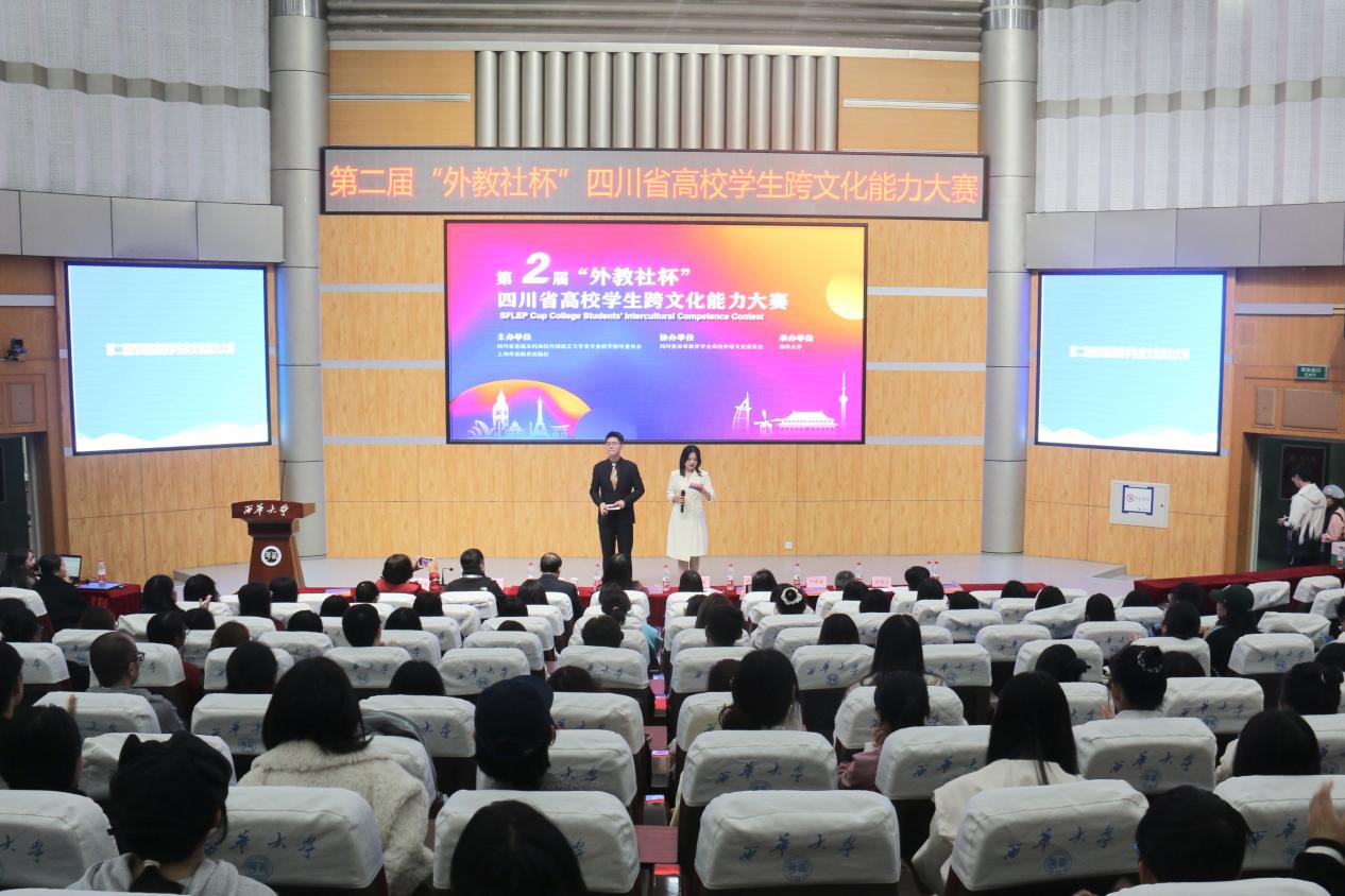 第二届“外教社杯”四川省高校学生跨文化能力大赛决赛于2023年11月11日在西华大学举行。本次比赛由四川省普通本科高校外国语言文学类专业教学指导委员会和上海外语教育出版社主办,四川高等教育学会高校外语专业委员会协办,西华大学承办,旨在加强文明互鉴、推动中外交流,促进国际传播。本次大赛有来自四川的十所高校参赛队伍共同参与角逐,由外国语学院教师罗雨虹、齐佳一主持。