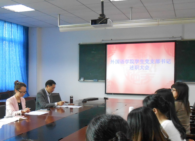 3月21日下午4点,外国语学院学生党支部书记述职报告会在学院会议室召开。院党委副书记曾国勇、学生党总支书记、总支委员、学生支部书记及党员代表参加了会议。