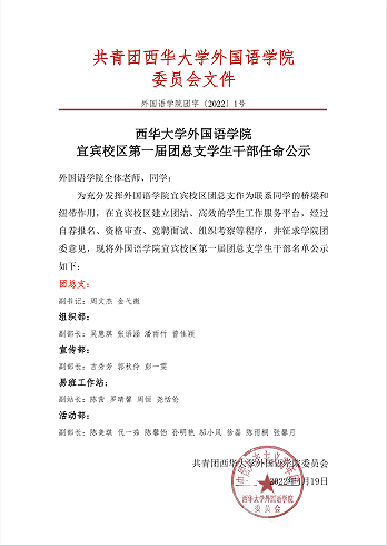 西华大学外国语学院宜宾校区第一届团总支学生干部任命公示