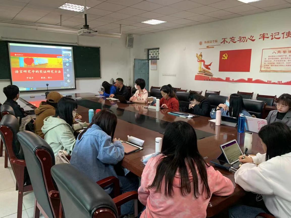 2022年4月20日(星期三)下午于外国语学院会议室,重庆医科大学外国语学院罗瑞丰教授应我院邀请作“语言研究中的实证研究方法”主题线上讲座。本次线上主题讲座由我院李国宏院长主持,外国语言学及应用语言学专业全体研究生参与本次讲座。