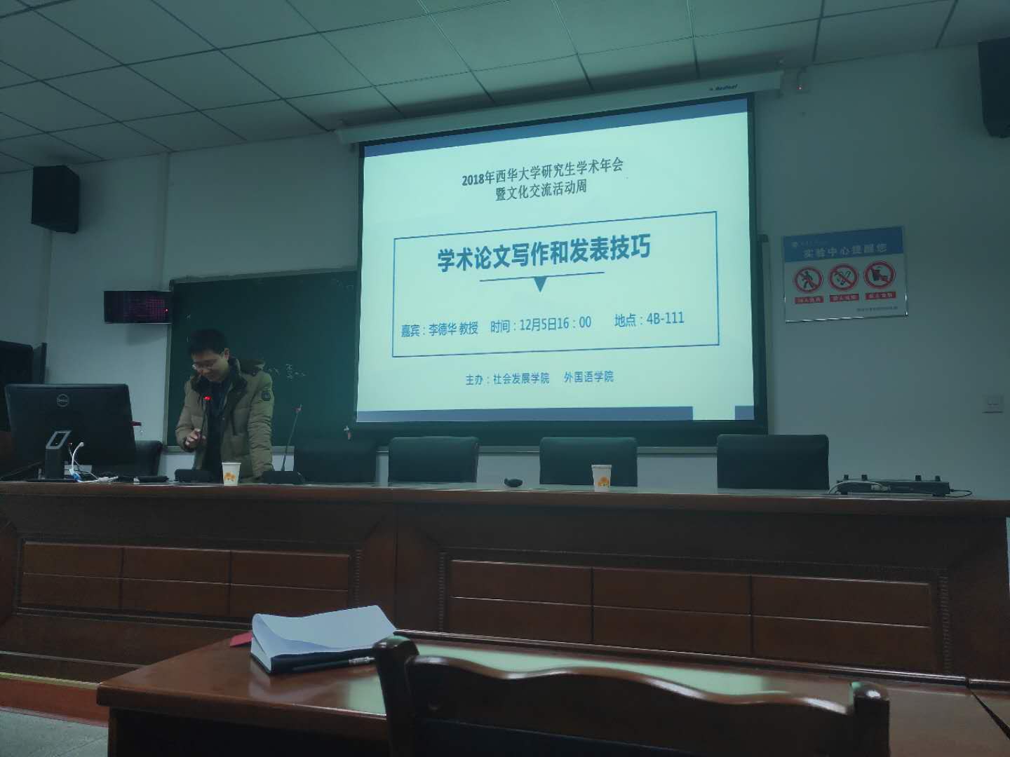 2018年12月5日下午,四川师范大学李德华教授应邀来到外国语学院作了题为“学术论文写作和发表技巧”的讲座。