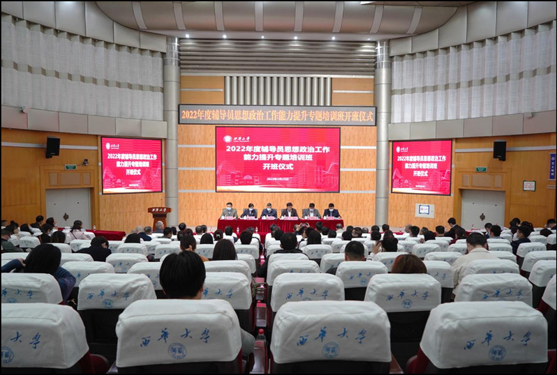 3月25日下午,西华大学2022年度辅导员思想政治工作能力提升专题培训班开班仪式暨首讲在四教报告厅举行。校党委书记、党校校长余孝其出席开班仪式并讲话,相关职能部门负责人、各党(工)委(党总支)书记、研究生工作部、各学院分管学生工作负责人、全体专职辅导员、学生工作部全体人员参加开班仪式,宜宾校区通过直播观看开班仪式。开班仪式由校党委副书记、党校常务副校长张力主持。