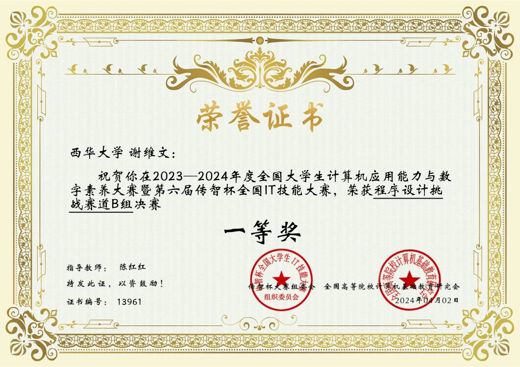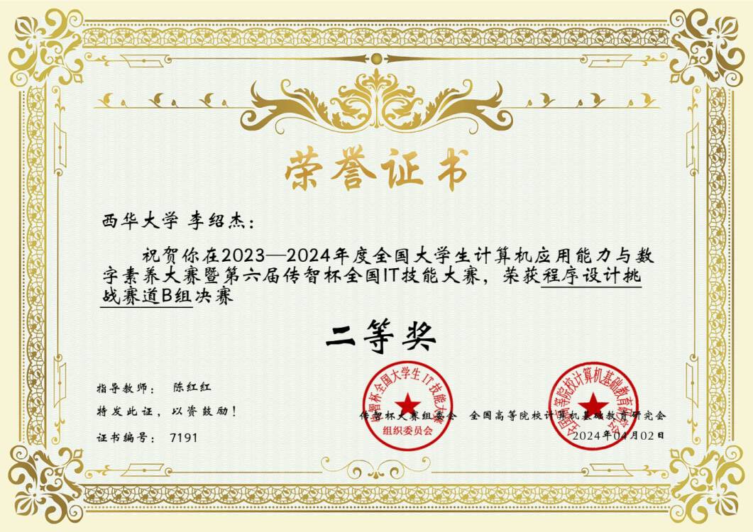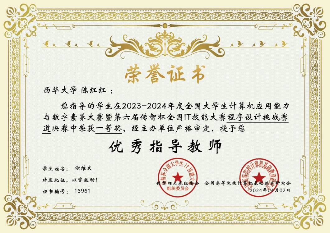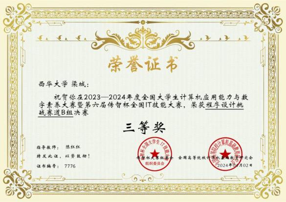 计算机与软件工程学院一直以来致力于培养学生在计算机工程领域的综合技能。这次出色的表现不仅反映了学院卓越的教育质量,还凸显了西华大学的学生在程序设计和计算机科学领域具有卓越的潜力。