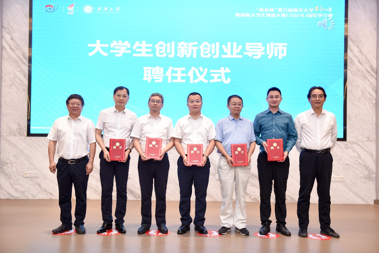 赛前,刘小兵副校长为杨刚、唐明、陈启春、宋舸、熊劲松、蒋礼平6位校友颁发了捐赠证书。费凌副校长和刘小兵副校长为杨刚、陈启春、宋舸、熊劲松和孙强5名校友颁发西华大学大学生创新创业导师聘书。