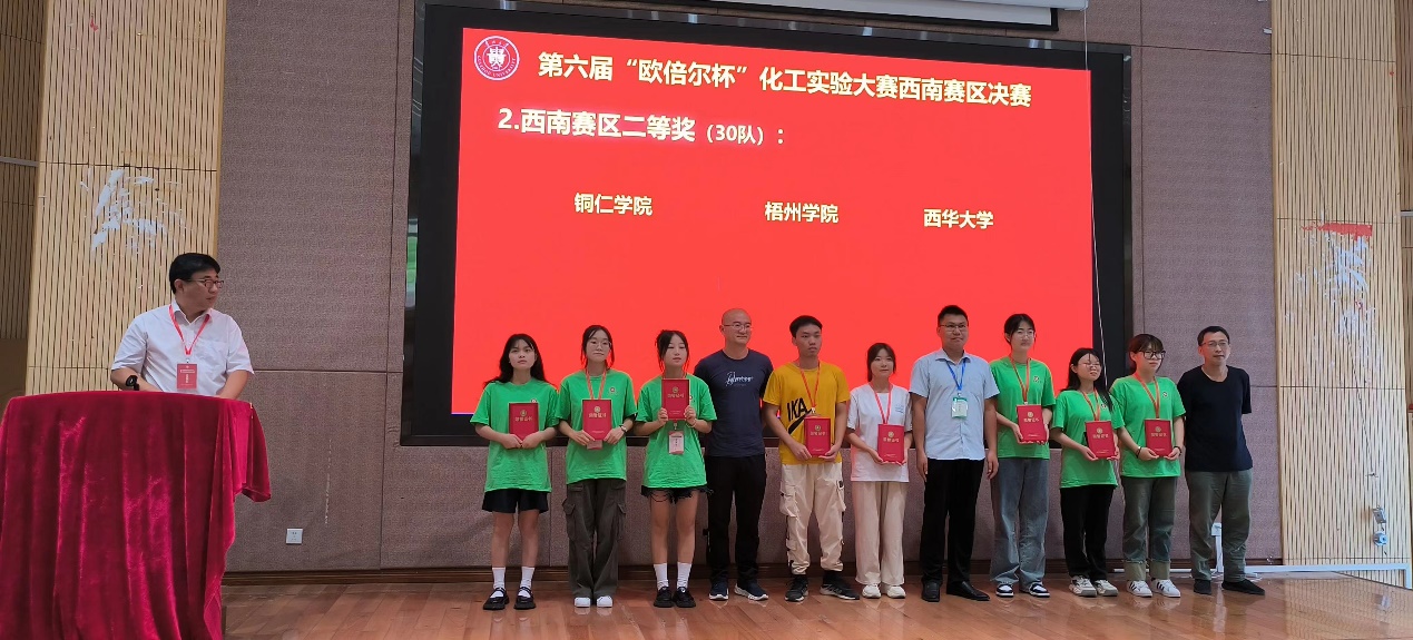 7月14日至16日,由中国化工教育协会主办、贵州大学承办的第六届“欧贝尔杯”全国大学生化工实验大赛西南赛区决赛在贵州大学举行。本次大赛主题为“启航-化学工程师”,共有贵州大学、四川大学、重庆大学等48所高校、1219支队伍参赛,最终48支队伍经过激烈角逐获得决赛资格。西华大学食品与生物工程学院2021级食品科学与工程专业的杨璇、谢晶和万静同学在李旭、陈志伟、刘洪、赵婕等老师的指导下参加了比赛。比赛期间,李旭老师担任了大赛实操流体力学组裁判。