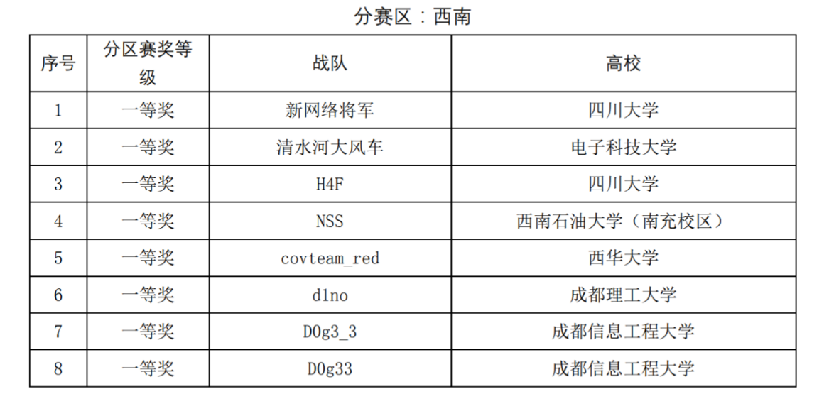我校晋级西南赛区分区总共2支队伍,在南赛区分区赛中队员们团结协作、奋力拼搏,在一天激烈的比拼中covteam_red战队以排名第5的成绩,成功晋级总决赛(2021年第十四届全国大学生信息安全竞赛创新实践能力赛分区赛获奖结果:http://www.ciscn.cn/announcement/view/224)