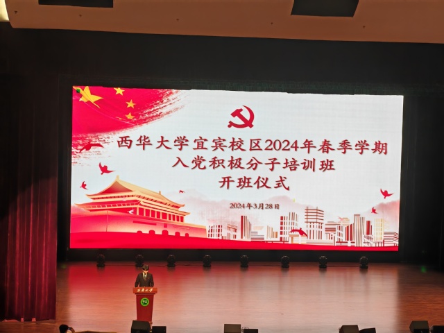 阳春三月,宜宾校区迎来2024年春季学期新一批入党积极分子。为深入学习贯彻党的二十大精神,提高入党积极分子的思想政治素养,2024年3月28日中午,宜宾校区2024年春季学期入党积极分子培训班开班仪式于会堂如期举行。宜宾校区党工委常务副书记陆跃文、学生工作办公室主任杨万能、培训班管理员老师以及297名入党积极分子参加本次开班仪式。