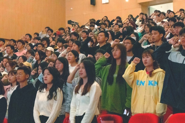 随后,在入党积极分子学员代表陈欣月的带领下,全体学员举起右拳,庄严宣誓。铿锵有力的誓言,坚定了全体学员加入中国共产党的决心与信念。