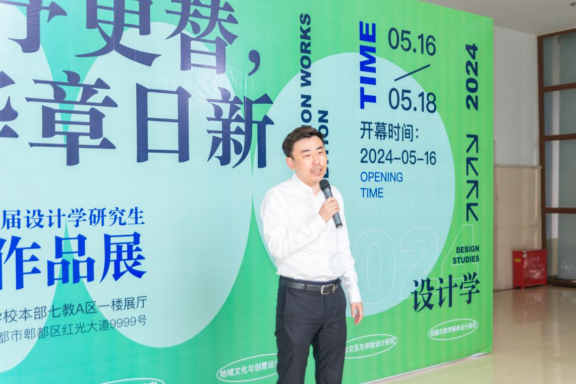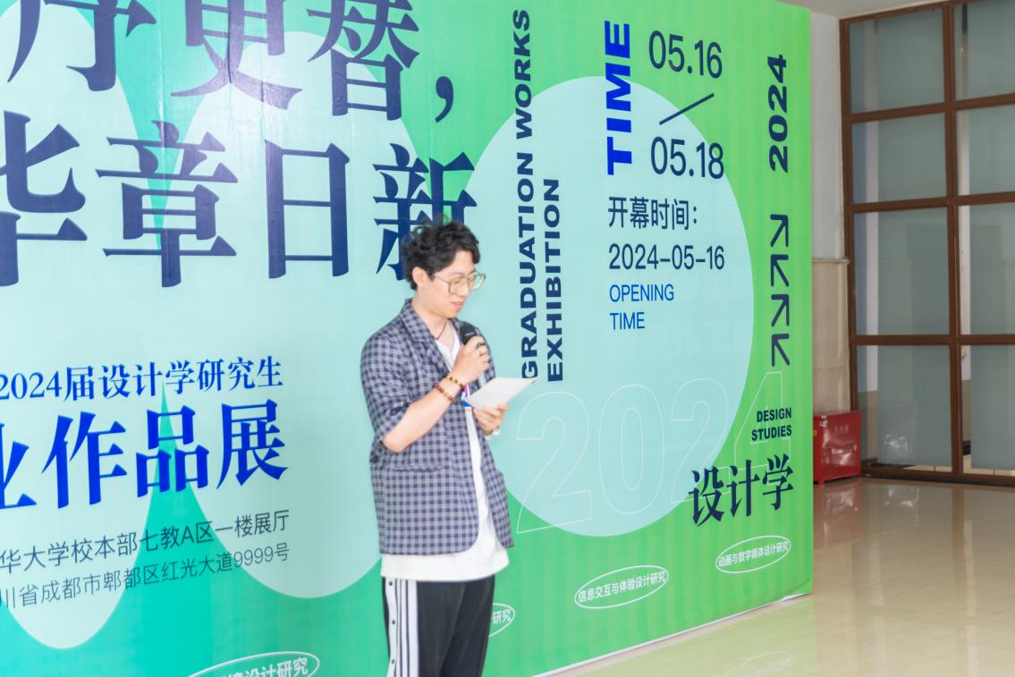 2024年5月16日,“岁序更替,华章日新——西华大学美术与设计学院2024届设计学研究生毕业作品展”开幕式在西华大学郫都校区第七教学楼A区一楼展厅举行。学院全体领导、各系室主任、导师代表、辅导员及2024届设计学全体研究生共100多人参加了作品展开幕仪式。研究生李强主持了本次开幕仪式。