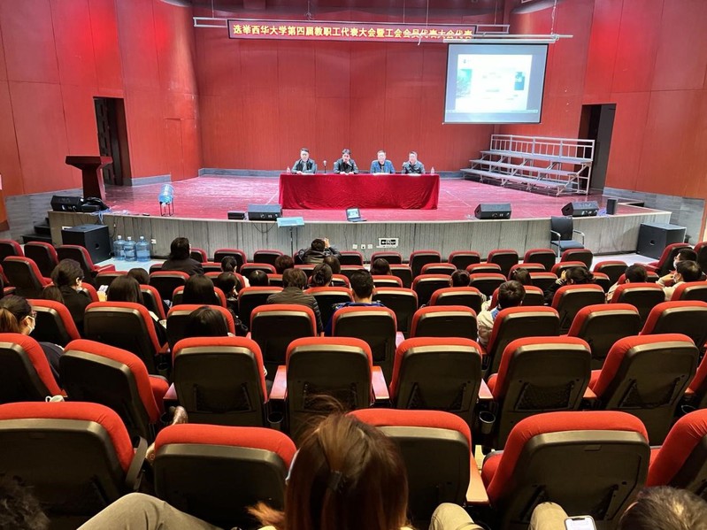 随后,学院分别举行了 “学院分工会委员会委员选举大会”和“西华大学第四届教职工代表大会暨工会会员代表选举大会”(以下简称两代会)。在学院分工会委员会委员选举大会上,李爱军向参会会员分别宣读了分工会委员的任职人数,任职条件、任职资格和选举办法,经过差额、无记名投票方式选举产生出刘英、孙林、李爱军、李韵、杨科(以姓氏笔划排序)5名学院分工会委员。在学校两代会代表选举大会上,李爱军宣读了《关于选举西华大学第四届教职工代表大会暨工会会员代表大会代表的通知》,通报了前期组织教职工充分讨论的情况,经学院党委会研究同意后,才正式召开本次两代会代表选举。大会严格按照换届选举程序,以差额、无记名投票方式选举产生了张国仲、曾贤、蔡燦、戴龙月(以姓氏笔划排序)4名老师为学校两代会代表。